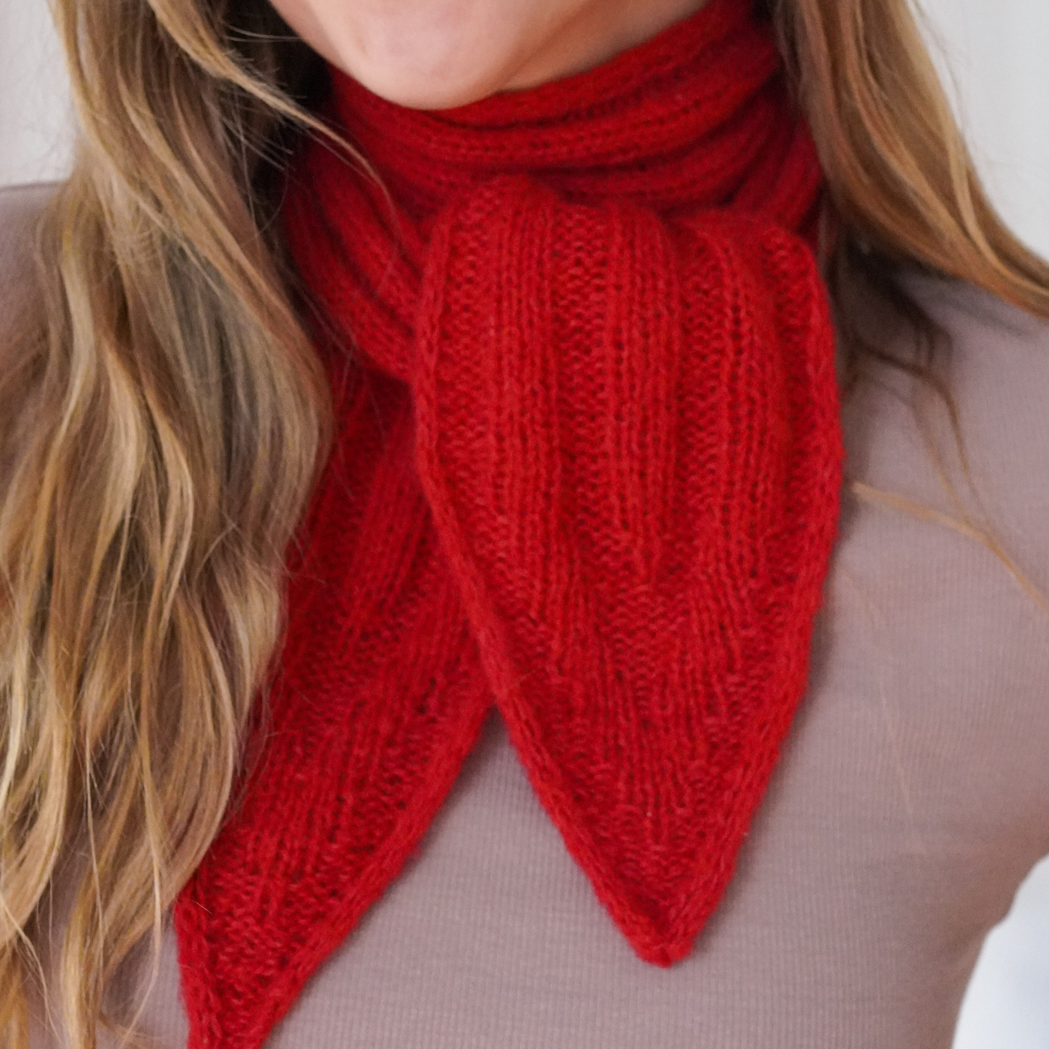 Der Schal wird ca. 10 cm breit und ca. 130 cm lang, kann aber jederzeit individuell kürzer oder länger gestrickt werden – ganz nach persönlichem Geschmack. Die Ränder werden als I-Cord gearbeitet und sorgen für einen sauberen, stabilen Abschluss. Im Mittelteil verläuft ein Rippenmuster, das sich an den Spitzen zu Dreiecken formt und dem Schal seine charakteristische Struktur verleiht. Das Muster ist spannend, aber nicht aufdringlich und wirkt auf beiden Seiten nahezu gleich – so entsteht ein wendbarer Schal, der sich vielseitig tragen lässt.