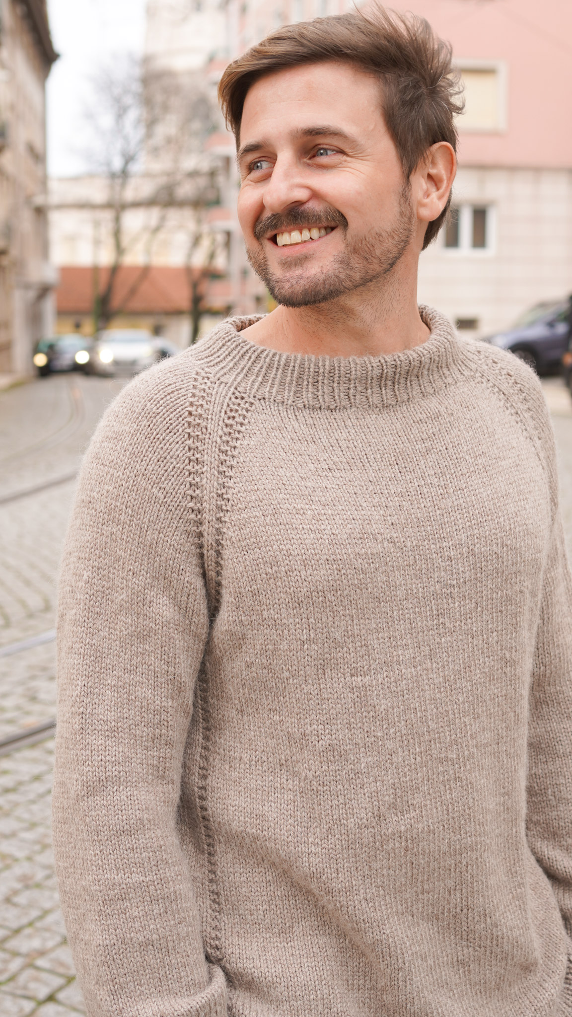 Diese Strickanleitung für einen Raglan-Pullover überzeugt durch ein zeitloses, klares Design, das speziell für Männer entworfen wurde, aber ebenso als Unisex-Pullover getragen werden kann. Ideal für alle, die einen modernen Klassiker stricken möchten – auch perfekt als Partnerlook.