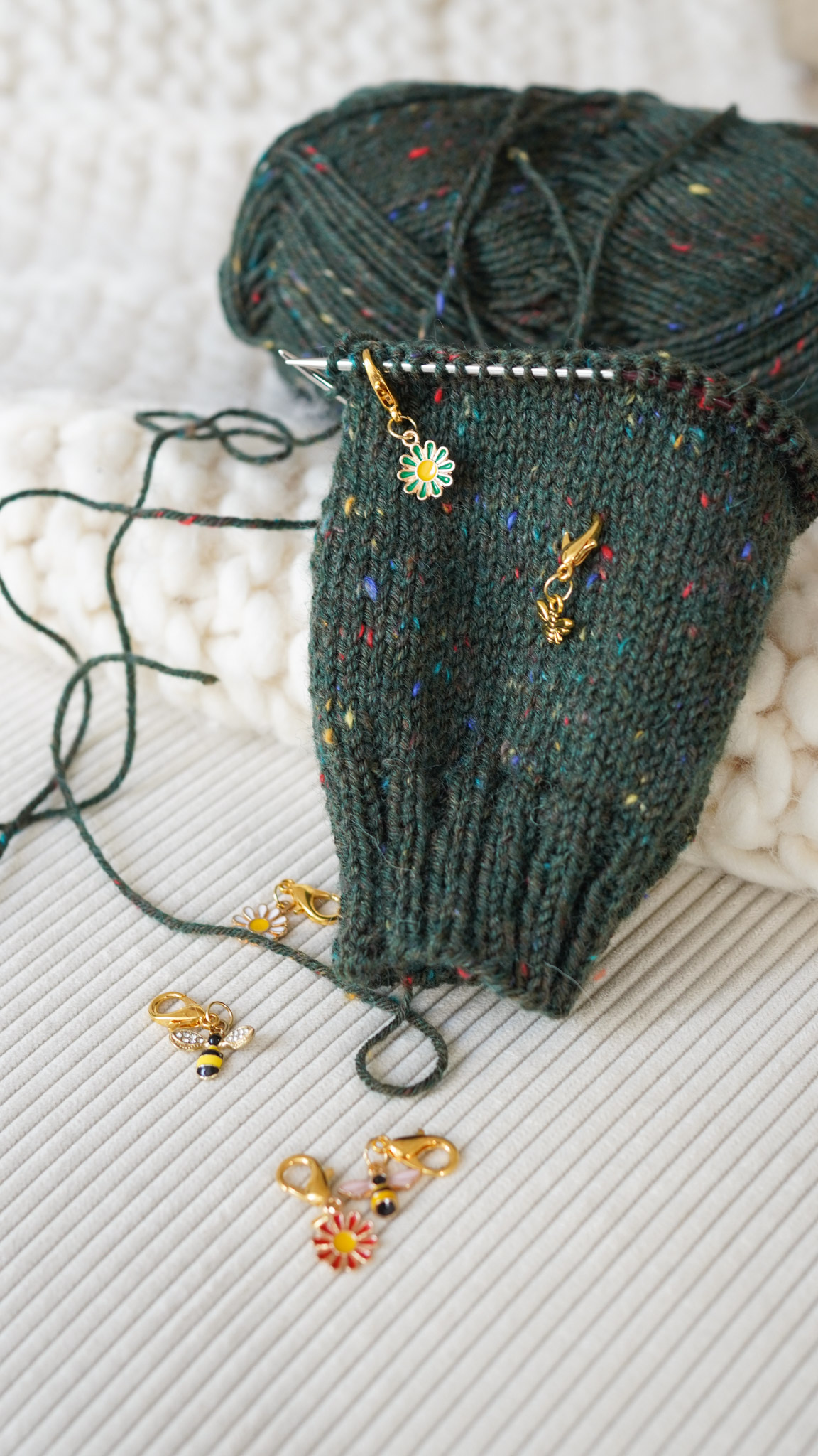 Ob zum Markieren von Rundenbeginn, Zunahmen, Abnahmen oder besonderen Stellen im Muster – diese Maschenmarkierer verbinden praktische Funktion mit liebevollem Design.